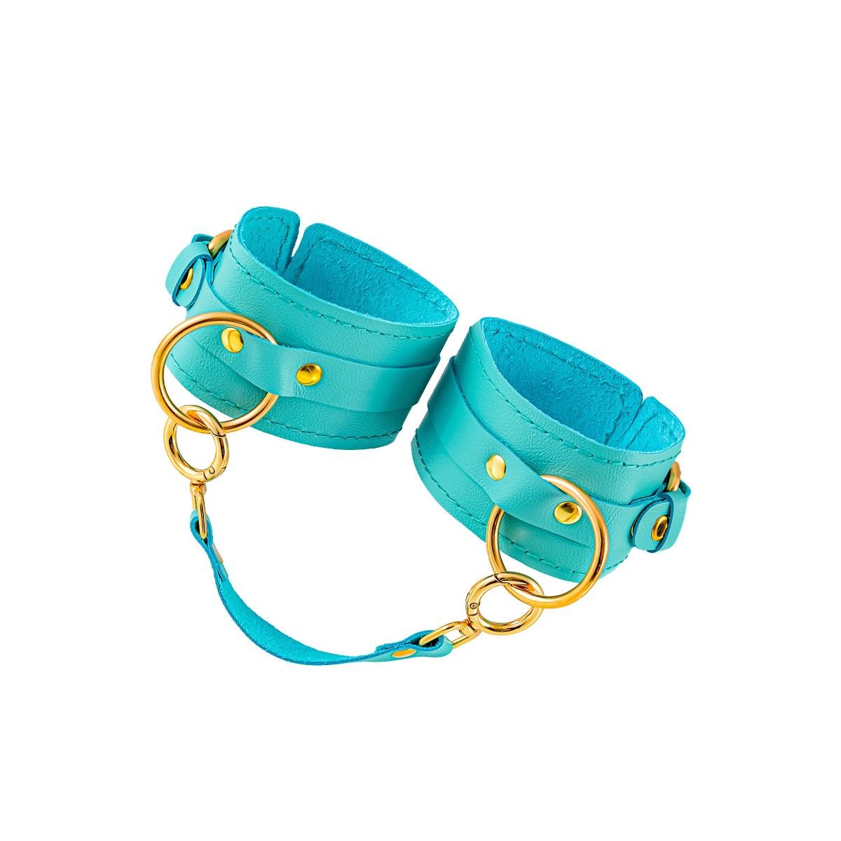 Готовы играть по-взрослому? Не бойтесь своих желаний! Основатели бренда уверены: лучший способ избавиться от искушения - поддаться ему! Добавьте пикантную деталь в ролевую игру и воплотите самую смелую сексуальную фантазию в реальность! Эти однослойные кожаные голубые (бирюзовые) оковы со строчкой в тон кожи могут стать стильным аксессуаром, а могут послужить вашим целям по своему прямому назначению. Частичное обездвиживание и невозможность двигать руками или ногами дают вам полную власть над партнером – взрослые игры для взрослых. Наличие двух колец и карабинов, соединенных между собой кожаным ремешком, позволяет использовать изделие как раздельно – аксессуар-манжеты, так и как оковы для фиксации. К широким металлическим кольцам также можно присоединить и другие аксессуары при помощи карабинов. Благодаря универсальному размеру оковы могут использоваться и мужчинами, и женщинами. Размер легко регулируется с помощью металлических пряжек, органично вписывающихся в общий стиль. Длина манжет – 25 см, ширина - 6,5 см. Длина сцепки – 17 см.