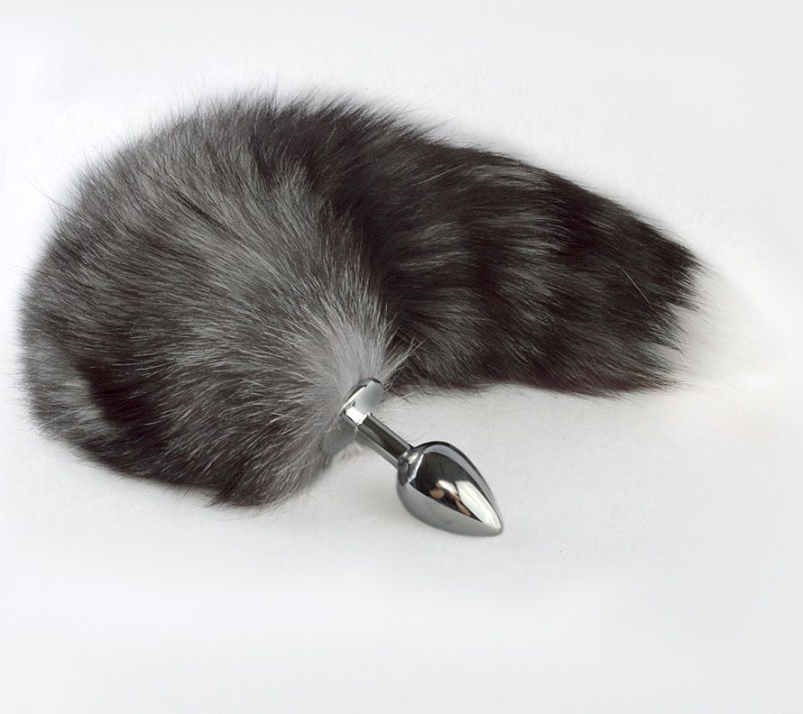 Анальная пробка с натуральным хвостом серого цвета Длина хвоста - 35-40 см.